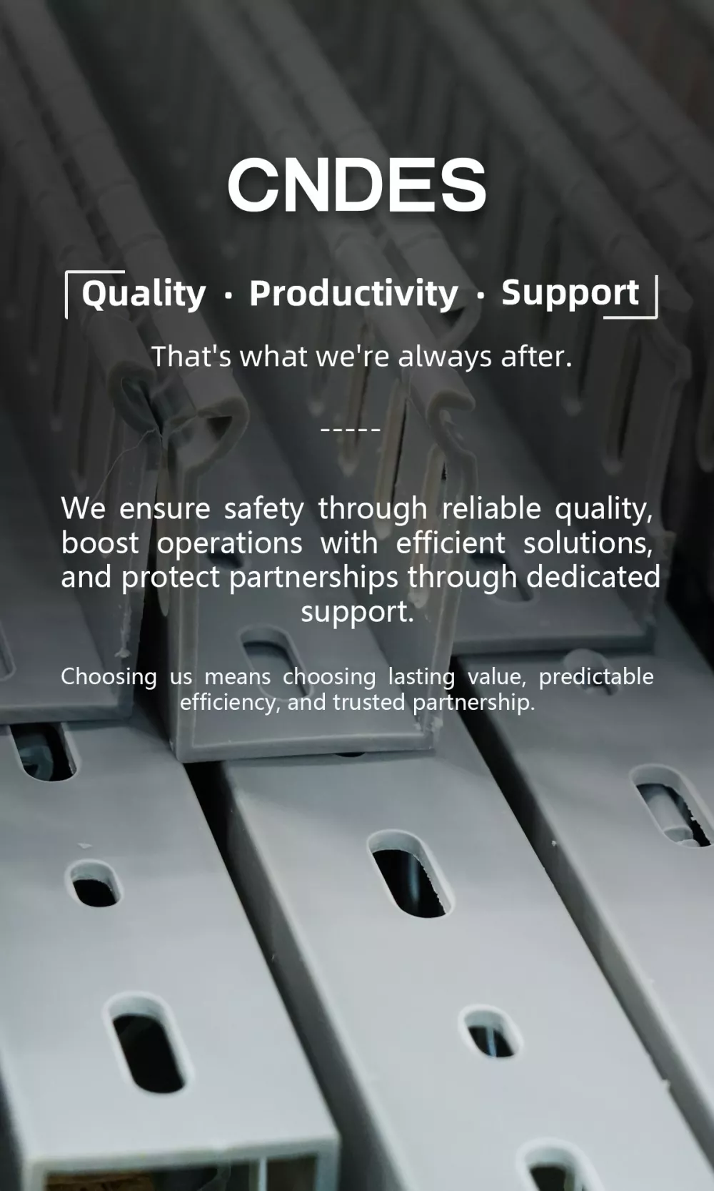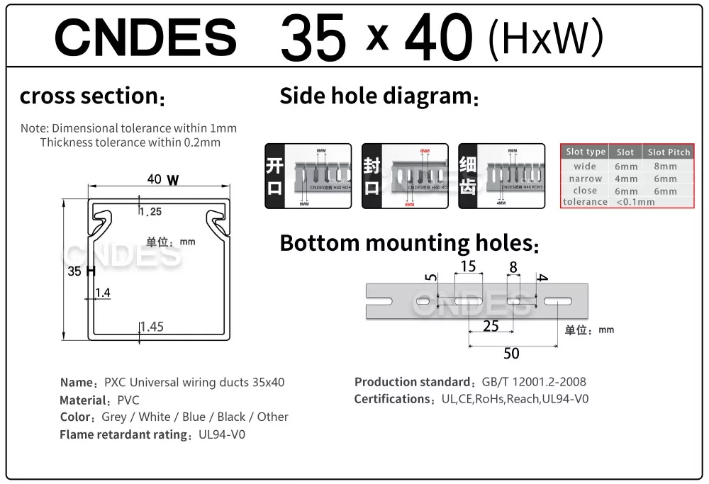 Tapasztalt gyártó: A CNDES több mint 20 éve a kábelkezelési ágazatban egy megbízható PVC csatornagyártó, amely kiváló minőségű, megbízható termékeket szállít.