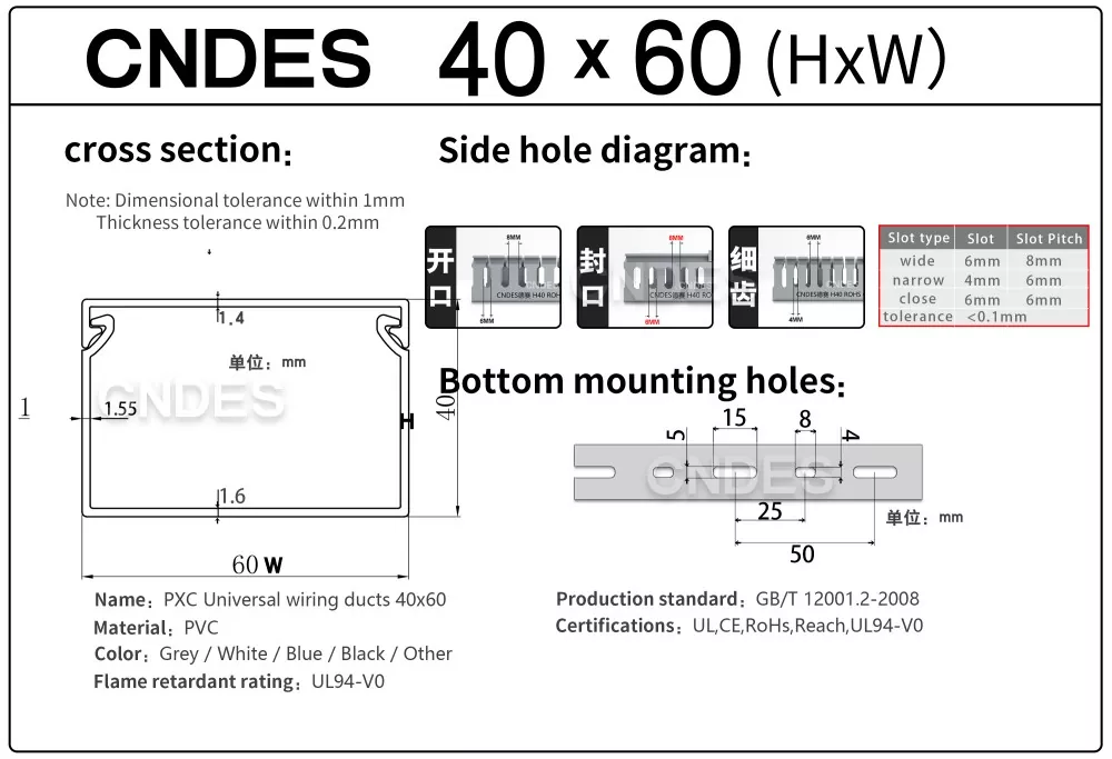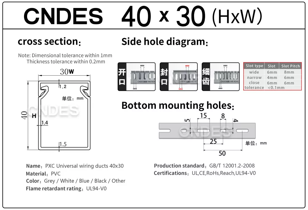 A CNDES a vezető hornyolt PVC vezetékek versenycsatornáinak gyártói és beszállítói. Itt bemutatjuk 40 mm magas kábeltálcáinkat, beleértve a 40*25, 40*30, 40*35, 40*40 és 40*60 méreteket.