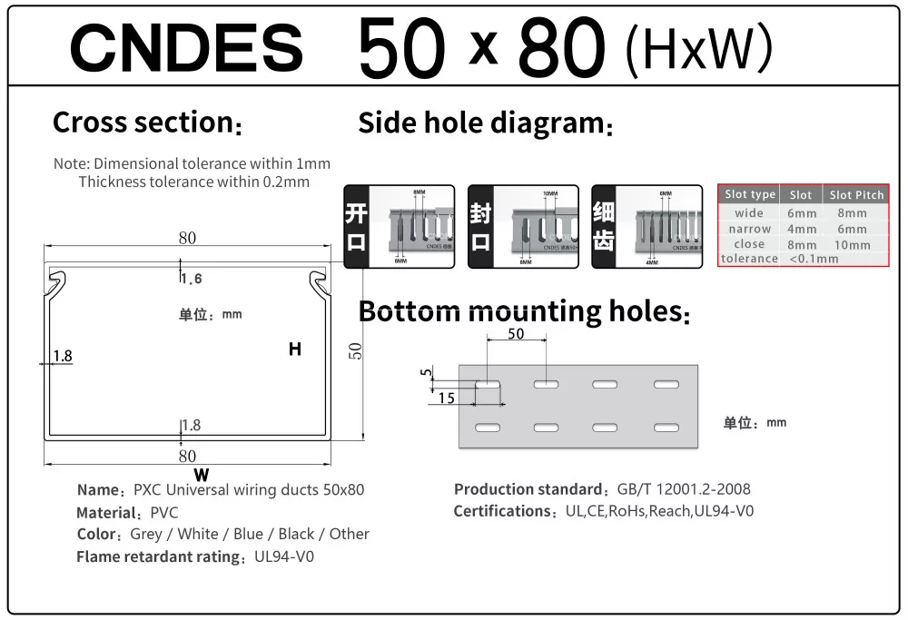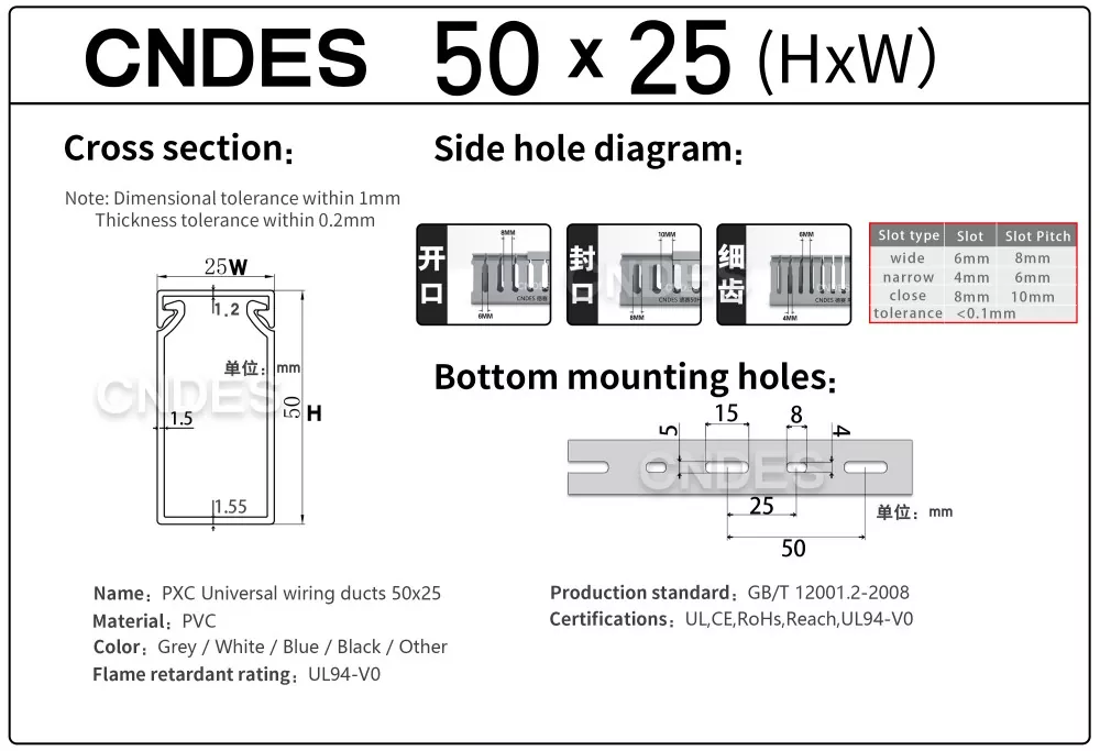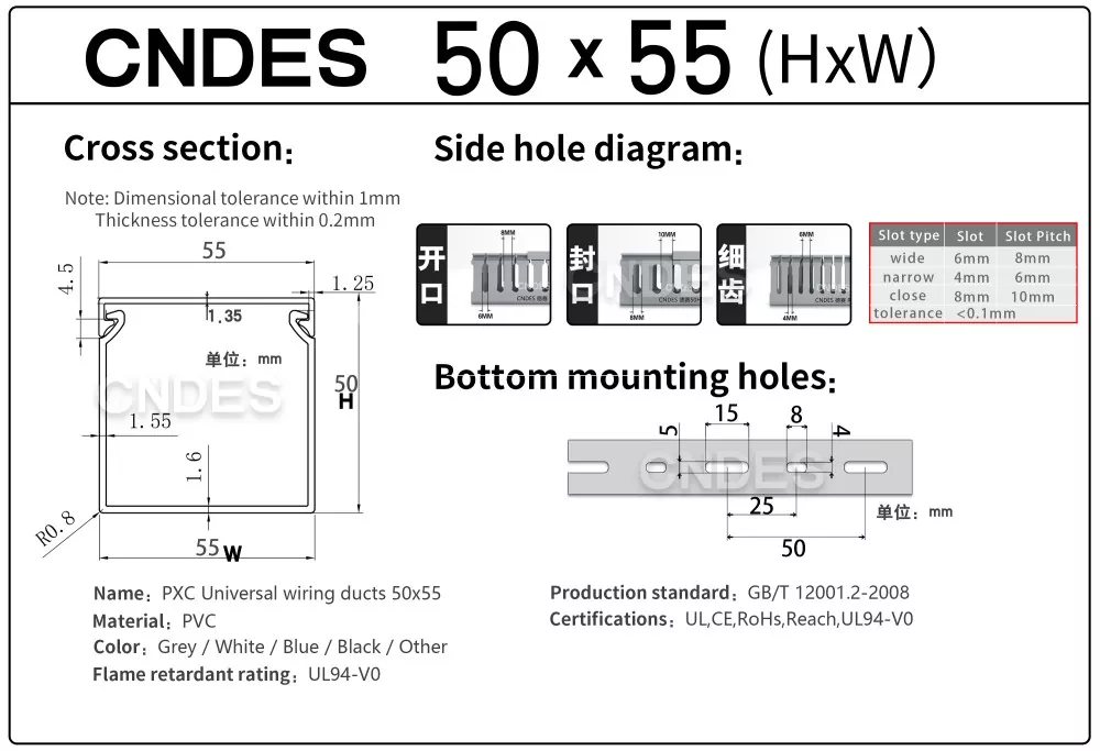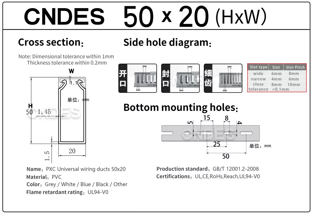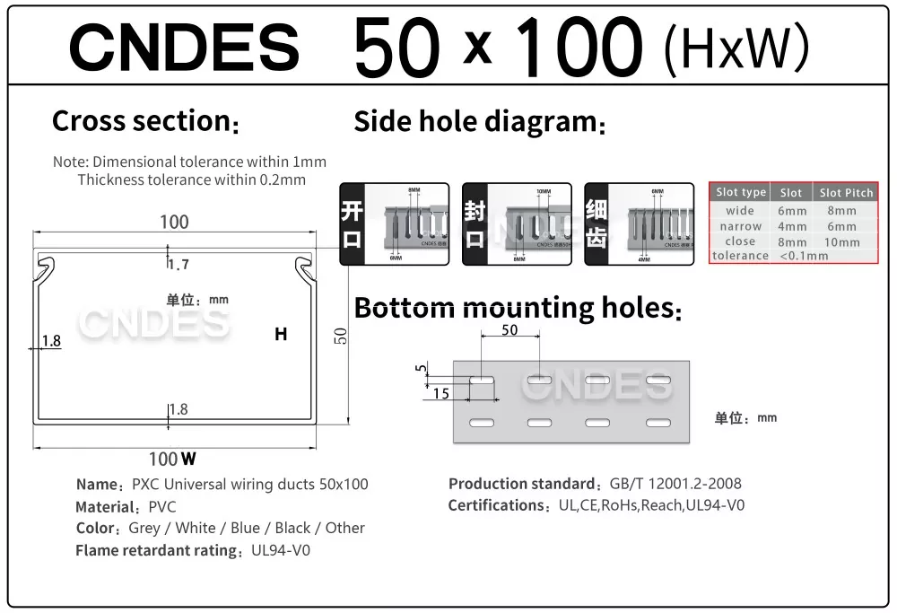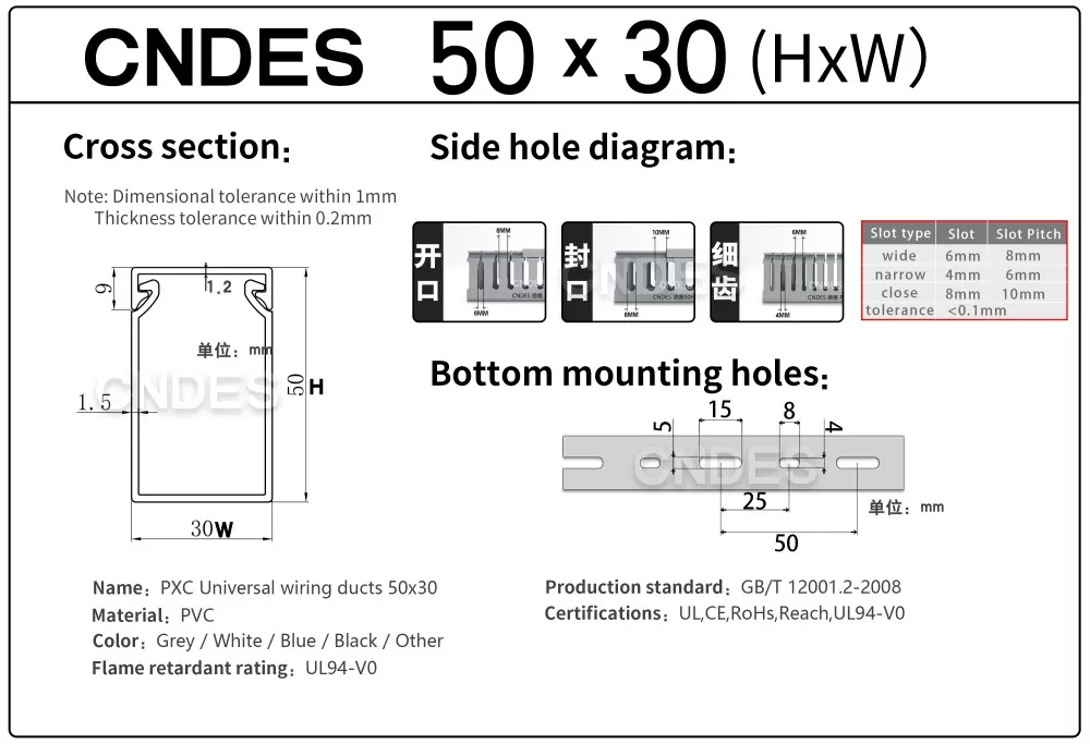 A CNDES egy gyártó és beszállító, amely hornyolt PVC paneles vezetékcsatornák szállítására szakosodott. Itt bemutatjuk 50 mm magas vezetékrendszerünket, beleértve a következő specifikációkat: 50*20,50*25,50*30,50*35,50*40,50*45,50*50,50*55,50*60,50*80,50*100.