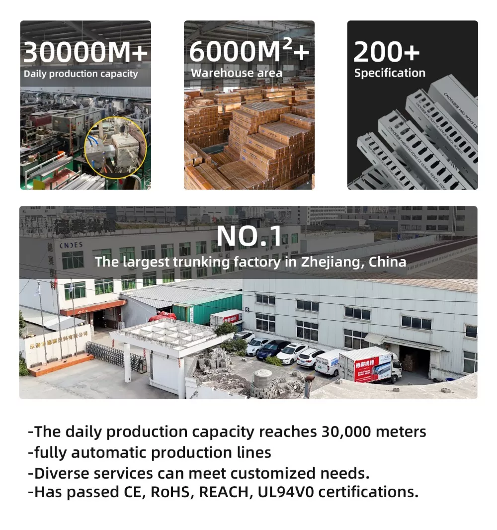 A CNDES, mint a fekete hornyolt PVC vezetékcsatornák professzionális K+F és gyártó gyára Kínában, tömeggyártásra, szigorú ISO-minőség-ellenőrzésre és OEM/ODM szolgáltatásra specializálódott. A fekete burkolatokat gyakran használják rejtett vezetékezést igénylő forgatókönyvekben (például házimoziban vagy irodában), vagy a különböző funkcionális áramkörök (pl. alacsony feszültségű és alacsony feszültségű vezetés) megkülönböztetésére.